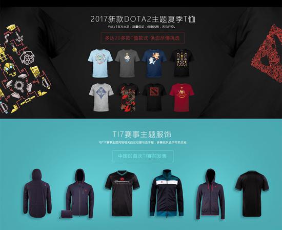 除此之外,各式各样的新款T恤,为你守候这个夏季的最后一丝清凉;更有TI7风格相关的选手服和运动服,披上他们的战袍继续翱翔在DOTA2的世界里,更多周边精品详情可查看//www.dota2.com.cn/international/2017/secretshop/。