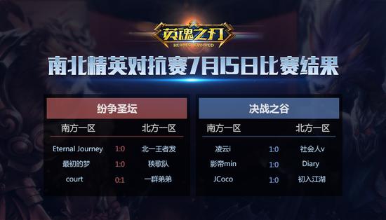 在7月15日的比赛上,南北不同的打法风格也在这次的南北精英对抗赛中得以体现,北方一区敢打敢拼的战术风格和出众的队员个人能力,让他们面对参赛经验丰富的老牌战队也丝毫不怯场。纷争圣坛首局北一王者发(北一)对阵Eternal Journey(南一),北一战队就早早的选出了核心充满侵略性的阵容体系,前期通过疯狂博士带动节奏,数次gank和小规模团战,建立起了不小的优势,然而南一区强大的运营能力和稳健的打法风格在EJ这支参赛经验丰富的队伍上展现的淋漓尽致,面对北一战队进攻性的打法,EJ选择带线发育。在稳住节奏之后,EJ把握机会拿下扎卡,凭借装备成型的食人魔首领率先冲阵打散北一阵型,让北一战队无法应对,最终EJ战队以1:0夺得首轮胜利。