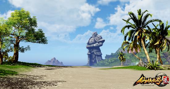 穿越过森林,将会步入一片沙滩。不远处,一座雕像屹立在山脚下。关于这个雕像,就不得不说一段被传唱至今的故事……据传,在上古时期,魔族突然入侵这片区域,一时间生灵涂炭。人皇第一战将恰逢途经此处,见此情形,立刻发出密报召唤人皇援军,并集结人们一起抵抗,直至援军抵达击退魔族。虽然,这场战役最后获得了胜利。但是,第一战将却为了保护人们受伤过重而亡。为纪念他,后人将之形象铸造成了雕像,放在此处,受人敬仰。