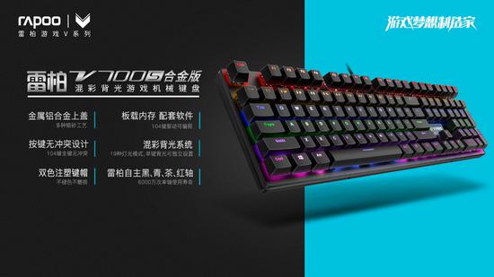 雷柏V500游戏机械键盘作为机械普及的开山之作,199元的售价塑造了机械键盘的标杆。今日,老牌实力大厂,国产外设领军品牌——雷柏(RAPOO)为旗下雷柏游戏V系列打造2017年全新199元机械键盘力作——V700S合金版混彩背光游戏机械键盘。时尚金属质感不凡的铝合金上盖,金彩纷呈,配套驱动软件,支持单键独立控制混彩按键背光,六色彩虹由您掌控。造就新一代混彩战键,锐不可当,现已火热上市。