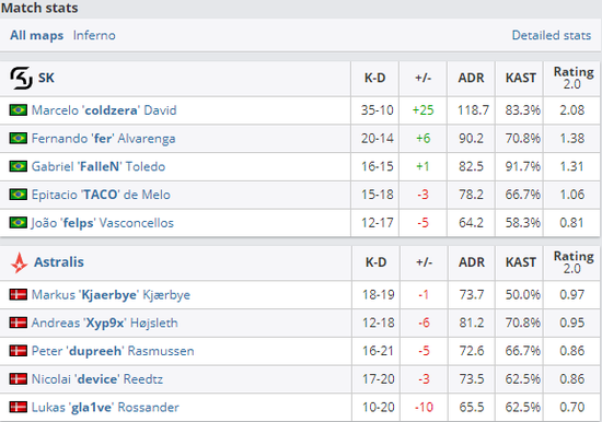 下半场赢下手枪局的A队开始他们的追分之旅,并且总有device、Kjaerbye等人站出来充当关键先生。然而第二十三局冷神再次发威,无甲沙鹰在A点二楼连刷三个,拿到赛点。最后一局面对SK的防守双狙,A队早已乱了阵脚,很快就丢掉了比赛。