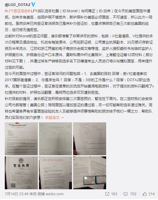 今年DOTA2的TI,还会有队员被拒签吗?16年的签证问题给很多DOTA2俱乐部敲响了警钟,所以为了备战今年的TI7,各大俱乐部早早就开始为没有美签的选手准备签证事宜,但是从目前的情况来看,好像并不圆满:LFY战队的选手Monet和Inflame再次在面签中遭拒,IG与IG.V目前还剩Boboka一人签证未过。