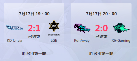17日首场比赛在韩国队伍KongDoo Uncia和中国队伍LGE之间展开,资格赛中表现出色的LGE面对韩国队伍,在先失一分的情况下,凭借自己拿手的双飞体系在漓江塔成功扳平了比分,但是在66号公路的决战中还是不敌KongDoo Uncia,1:2惜败。