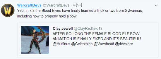 玩家:这么久了,女血精灵的拉弓姿势终于修复了,非常漂亮!