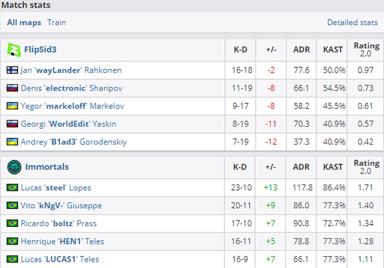 今天的FlipSid3失去了往日的风采,多个优势残局屡屡出现失误。在枪法、战术都劣于对手的情况下第十二分的外场Rush终于为他们打开了局面,然而变奏也仅在半场追回四分以5-10落后Immortals。