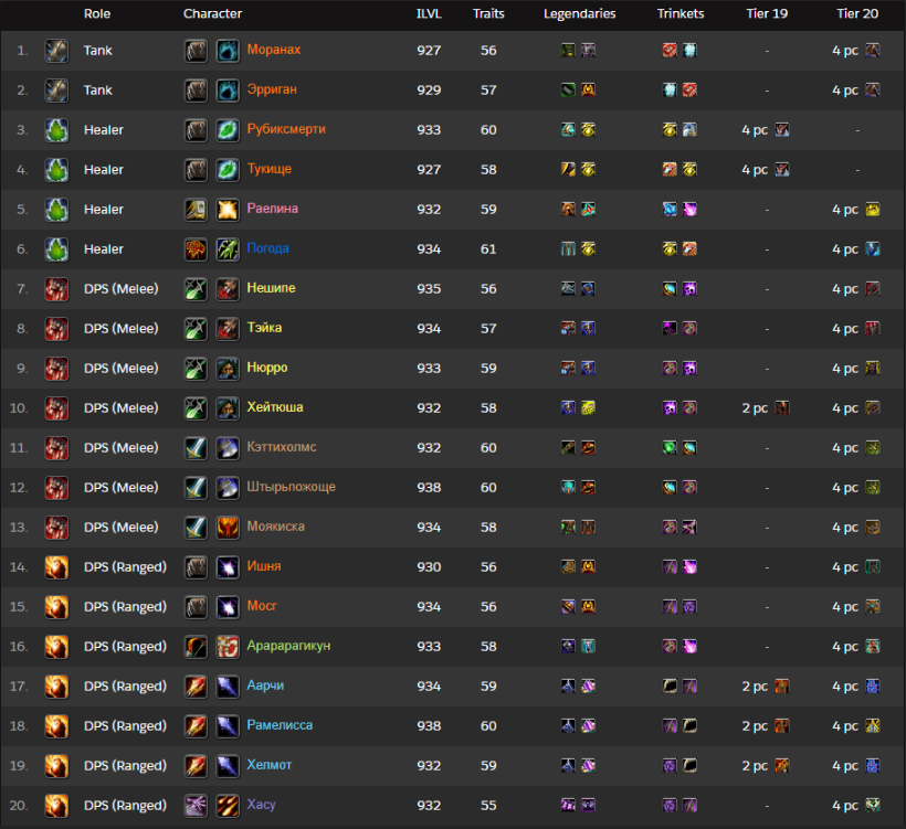 Raider.io上的Exorsus页面也列出了他们的阵容组合,击杀时平均装等为933.52: