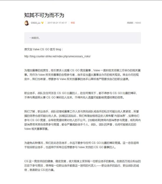 或许是出于不想直面相对的考虑,ESL称这次的解禁将不适用于任何ESL举办的Major/Minor赛事。暂时不想惊扰V社的ESL试图通过这个束缚来让自己看起来像个乖宝宝,可事实上这已经是狠狠的一记重拳丢到了V社脸上,16年1月V社就假赛行为公开表态,称为了保证比赛公平性,将之前所有的因假赛而被禁赛一年的选手全部终身禁止参加Valve赛事,这其中就点名了iBP和Eplison的队员。当时的ESL与V社处于蜜月期,自然是拔刀相助,将禁赛范围扩大至ESL所有赛事,不久前V社通过官博发声,称应当严肃对待假赛问题,保证比赛公平性,而如今差不多拔刀相向的两方关系让ESL做出食言举动也在情理之中。至于V社如何应对,或许要等到TI7结束后方可知晓。