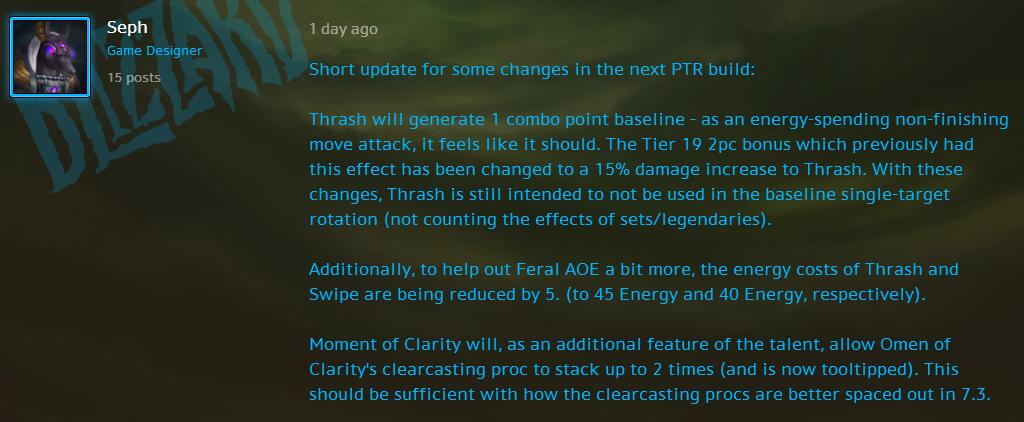 洞察秋毫作为天赋的额外功能,允许清晰预兆的节能施法触发最多叠加2次(技能说明也改动了)。这应该能更好地帮助7.3的野德使用触发的节能施法。