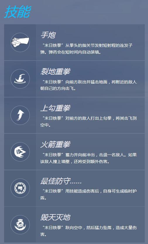 《守望先锋》新英雄毁灭之拳即将在7月28日与大家见面,这个英雄的特点是高机动,高爆发,每个技能都带有控制,简单粗暴是这个英雄的特点。毁灭之拳是黑百合,黑影,死神的同伴。在预告动画中,毁灭之拳对阵温斯顿,裂空和源氏战了个平手。也预示着这个克制放狗阵容的新英雄即将进入大家视野。接下来我们带来详尽的技能介绍。