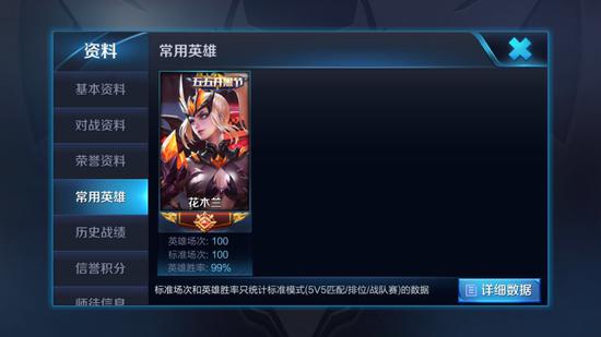近日,若月晒出战绩,截至整整100场比赛,若月仅输一场,花木兰胜率高达99%,实力惊人!花木兰是《王者荣耀》中首位双形状的英雄,看似只要三个自动技能,可是实际上却只要切换合适,就相当于具有6个主动技能,需要在战斗中迅速反应过来如何切换技能最为合适,“姐来展示一下高端操作”的英雄台词所言不虚。
