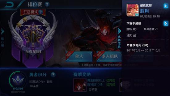 最高连胜76这是什么概念?在当前深坑遍地的排位环境,越往上越是渡劫困难,尤其月姐姐顶着“触手若月”那么大招牌出去,不怕遇到演员吗?