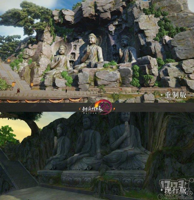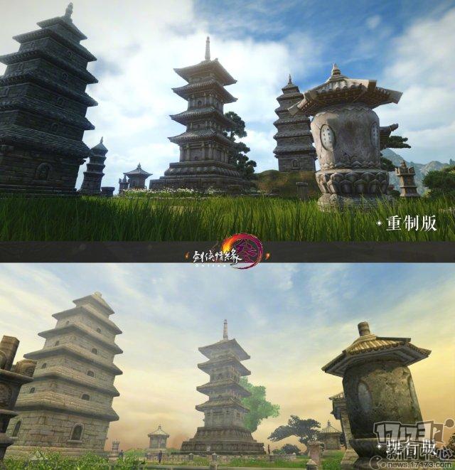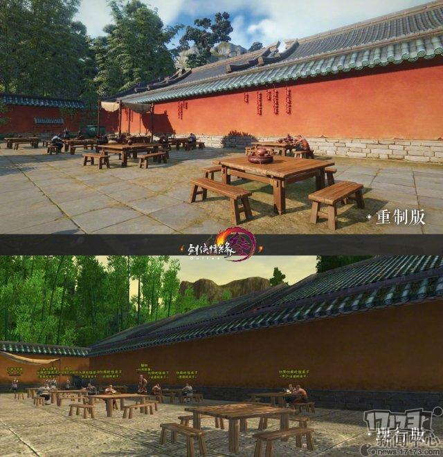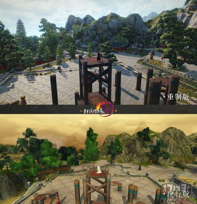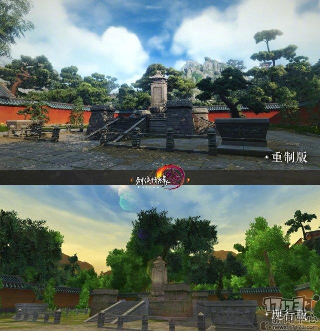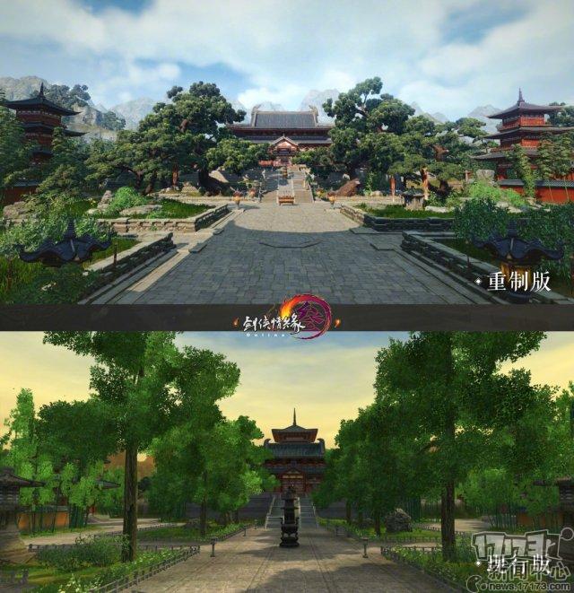 《剑网3》制作人郭炜炜在2017CJ前夕曝光了《剑网3》重制版的最新消息:少林重制版场景和现行版本的对比。从公布的截图来看,少林的重制场景比之前公布的纯阳场景有了进一步的提升,细节表现和光照效果更加真实,同时也保留了目前《剑网3》的总体风格。