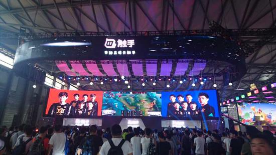 听闻eStar和XQ战队将在触手展台开战,人流很快朝这边涌来。