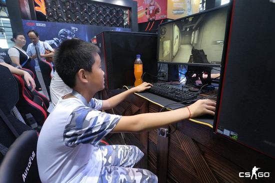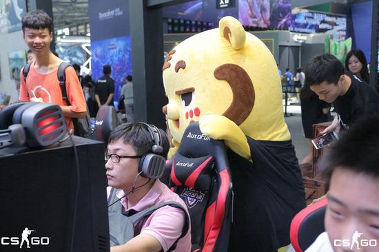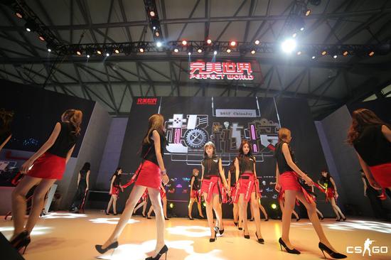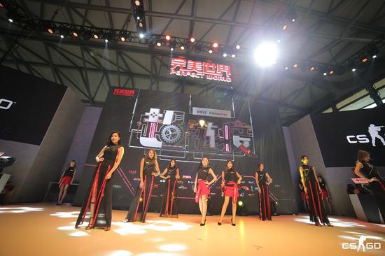 专业的电竞设备在CS:GO主舞台,活动一开始就引燃了全场氛围,五位美女主播组成一队,在台上迎接现场玩家的挑战。想来能和可爱的小姐姐“激情对射”一场,就算成为她们的枪下亡魂也死而无憾了吧!