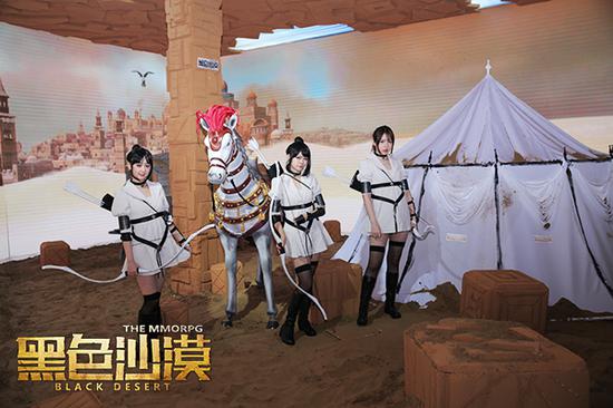 真实的干沙,巨幕游戏视频,还有一匹由玻璃钢制作而成,1:1仿真还原的游戏战马,这简直就是从电脑荧幕走进现实的黑色沙漠啊!