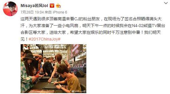 而若风作为电竞圈的明星代表之一,这次CJ的行程每天也是排得满满的。