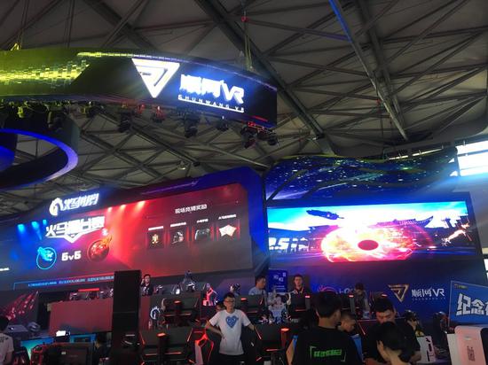 此外,堪称尖叫现场的顺网VR今年有啥新鲜玩法?顺网VR在今年CJ上向玩家们揭秘了网吧新玩法顺网“轻VR方案”——“坐式”VR解决方案,在不改变网民娱乐习惯的基础上,用VR视角替代2D平面体验,带来了一种全新的VR体验。游戏内容更是给力!东方仙侠风格的VR角色扮演游戏《妖神战》、末日废土风格的VR竞技场游戏《Code 51》、多人联网VR竞技类游戏《铁甲荣耀》等一大波多人互动精品VR游戏CJ首发,玩家使用坐式VR头显即可体验身临其境的感觉,还可与其他玩家现场搏杀、一决胜负。CJ一开展现场尖叫不断,让玩家们大呼“过瘾”!