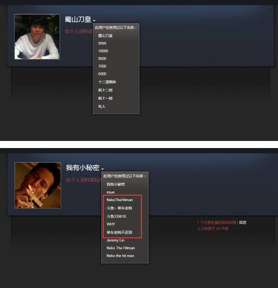 点开两人的steam资料,可以看见在资料的右下角YYF并没有红字,而单车多了一行显眼的红字:1个记录在案的游戏封禁。