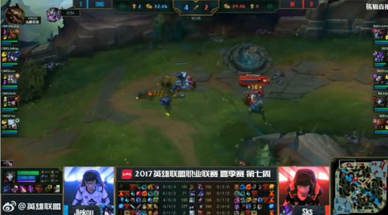 比赛前期OMG因为英雄肉,控制多的缘故,前期在一些小规模团战中取得了一点小小的优势,人头都集中在ADC身上。
