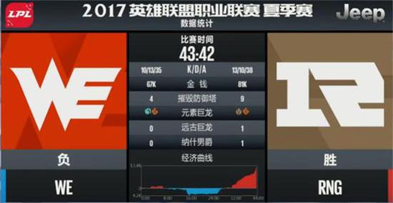 24分钟,RNG推掉了WE下路高地后转中开团,在一波0换5后,RNG一波结束了比赛,还零封了WE!