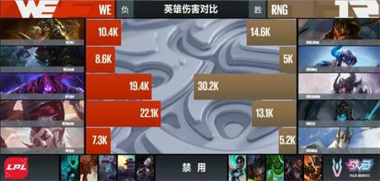 第一局双方前期打的势均力敌,各拿一个人头后再次进入了平稳期,直到一波小龙团,RNG的主要输出复仇之矛不在,导致4打5被全部击杀,一波就让WE拉开了巨大的差距。