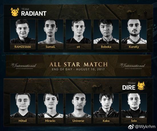 今天凌晨Wykrhm在微博公布了这次TI7的全明星阵容。令人有些意外的是中国的两位超人气选手Burning和Maybe都未能入选全明星阵容,而Newbee战队的kaka和“唯一B神”boboka两位国内顶尖的四号位选手则成为了唯二将出现在全明星赛场的中国选手。