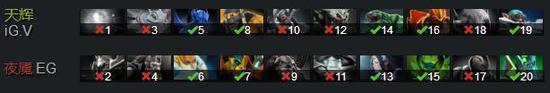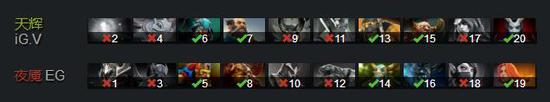 IG.V选择了比较冷门的飞机、潮汐、龙骑配上夜魔与萨满的组合,EG则选择了骨法、白虎、死灵法师配上小娜迦与大牛的酱油组合,IG.V的阵容偏肉而EG则是专门打肉核的阵容,感觉IG.V危险了。