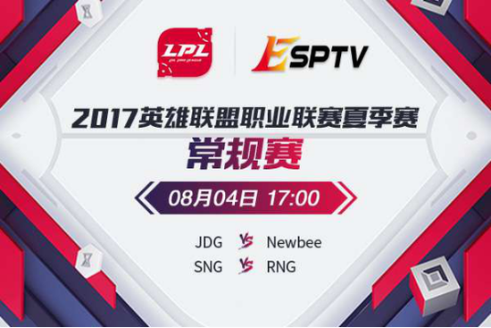 ESPTV电竞世界频道明日(08月04日)17:00将为您直播LPL夏季赛常规赛的比赛,由JDG Vs Newbee ,SNG Vs RNG,欢迎届时收看!