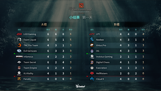 今天是TI7正式开始的一天,之前也有介绍过这次小组赛全部放在训练室内进行,和以往的Major一样,并且禁止闲杂人等入内,一方面是为了保证选手能在熟悉的环境内有好的发挥,另一方面是不希望有人去打扰选手。一整天激烈的比赛过后结果如下: