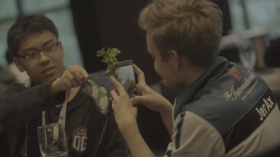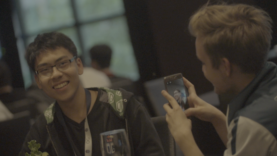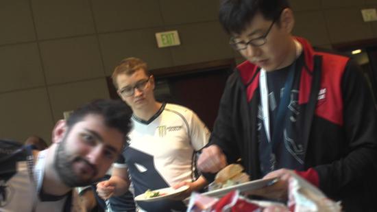 不过欧美选手就适应的多了,而且Liquid打完比赛后全队心情都不错,GH发现我们在拍照,还冒出来抢镜搞怪。
