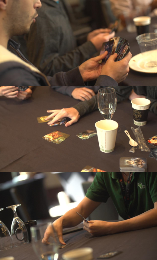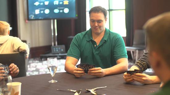 大家又没有也想来一套?经过斯拉克的介绍,他们玩的这个这个游戏跟普通的扑克牌很不一样,是一种转盘式的牌类游戏,你从上家那里抽来牌如果有一样的牌就要打出来,然后下家再继续抽你的牌,谁先打完手上的牌谁就赢。