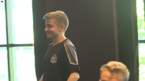 OG这边刚刚赢了C9旗开得胜,大爹带着招牌式的笑容到处聊骚。