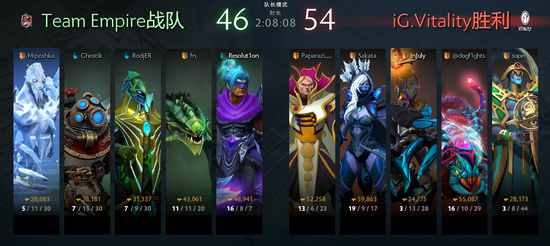 前两天的比赛中,超过一小时的比赛并不多,大家纷纷表示现版本膀胱局这么少见真是太好了,然而今天的比赛中,一场比赛改变了大家的看法,原来没了小娜迦,膀胱局也能打这么久——IG.V与帝国大战128分钟。