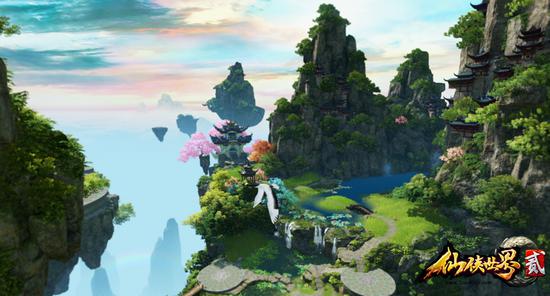 玩家在进入游戏后,首先抵达的场景是《仙侠世界2》的月神宫地图。在经过一系列的新手指导任务之后,玩家将离开镜像山洞副本,进入到灵隐峰。站立在峰顶之上,玩家将能够看到幻琉的虚空处处都是灵山,远处层峦叠嶂,若隐若现!满树鲜嫩的绿叶,遍地芬芳的繁花……这里的风光就仿若一幅精美的画卷一般。