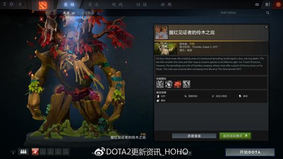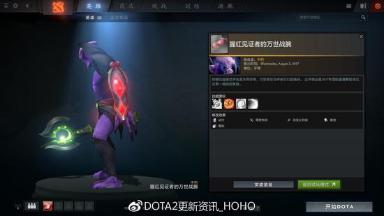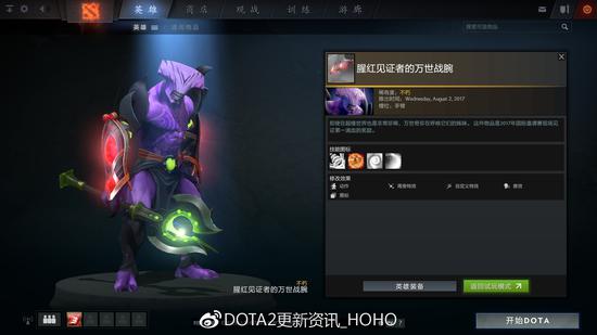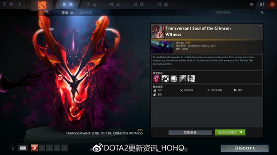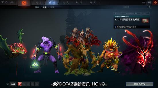2017年猩红见证者的珍藏也加入游戏,这个珍藏只有在现场观战TI7的刀友有机会掉落,一共有5个不朽饰品: