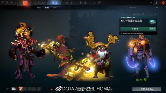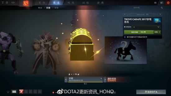 这次更新主要是加入了TI7的2017年珍宝之瓶,一共有8个不朽饰品,卡尔不朽为额外稀有,纯金箱子为额外非常稀有,2017国际邀请赛神秘信使为极其罕见,但是目前不知道什么样子,普通珍宝之瓶为3.99美刀,如果购买带有解说签名的为4.99美刀。