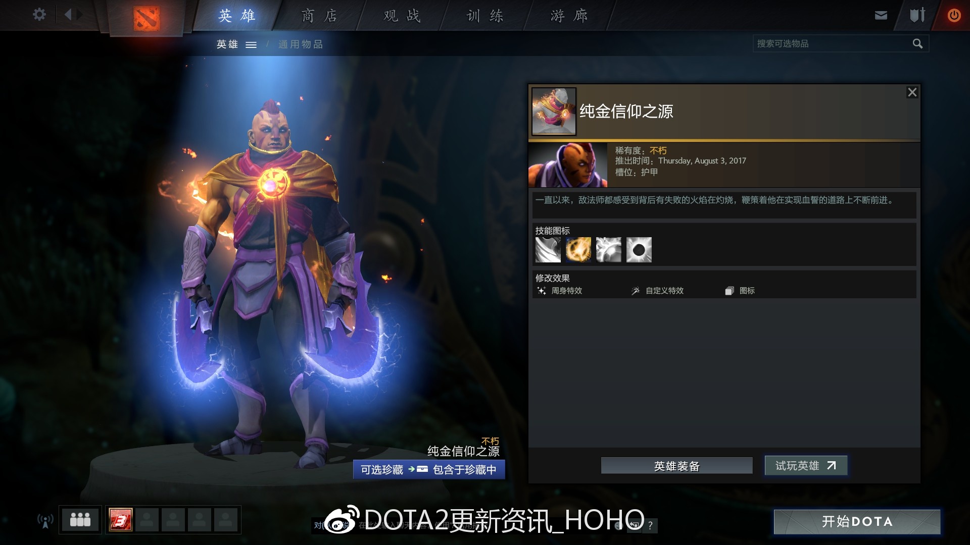 额外稀有为纯金敌法不朽护甲,修改2技能图标和技能特效: