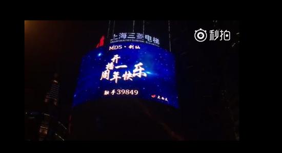 近日,上海市中心三菱电梯大厦超级大屏广告位的内容,吸引了不少人驻足观看。小编了解到,这是触手直播《王者荣耀》人气主播mds丶剑仙的粉丝,为庆祝剑仙开播一周年,22个粉丝联合斥巨资买下的广告位,全天循环播放记录剑仙成长历程的VCR。
