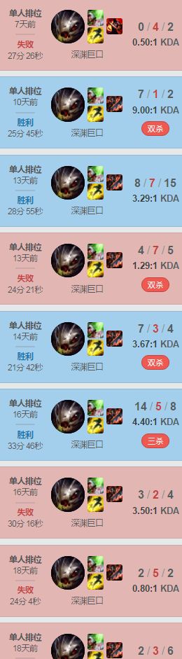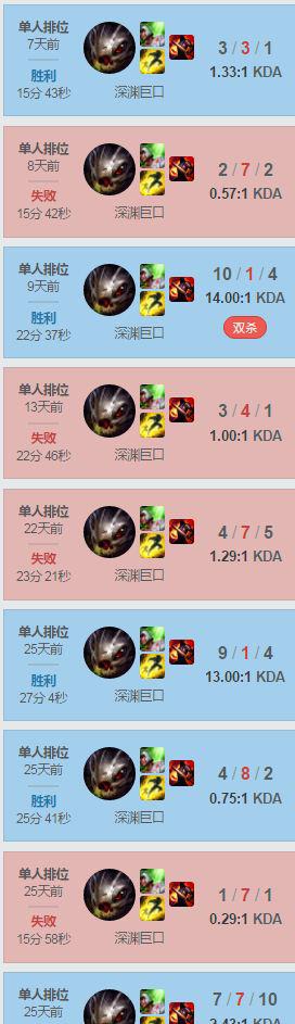 举几个例子,因为刚好是7天前的rank,截图上的战绩刚好就是以7天为分隔节点。