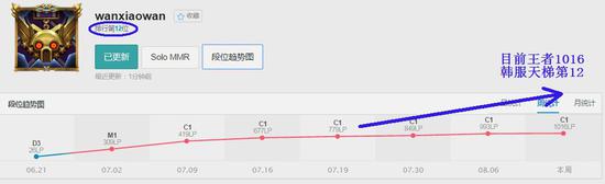 一个ID为wanxiaowan的选手,从ID上看,应该是个国人。目前排名第12,主玩中单。