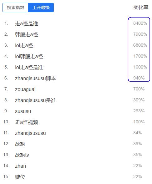 超过了最近因某嘻哈节目在风口上的“吴亦凡”,超过了“英雄联盟”,更是远超UZI和7酱……