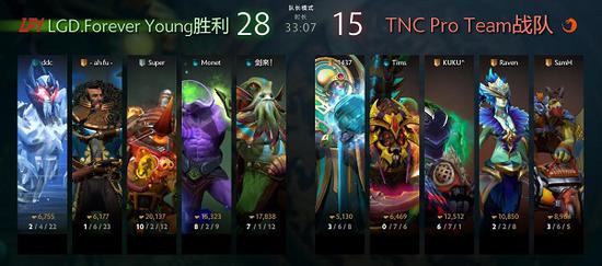 第二局的LFY和TNC连续换路试图打出针对,但是LFY的核心经济始终领先。钢背兽经济优势后,TNC完全无法解决,而虚空假面和先知的经济也是完全碾压对方,三核成型后,TNC在正面完全无法抵挡LFY的进攻,无解的钢背兽冲阵杀人势不可挡,在完全无法防守后,TNC也是打出GG,LFY2比0挺进胜者组半决赛。