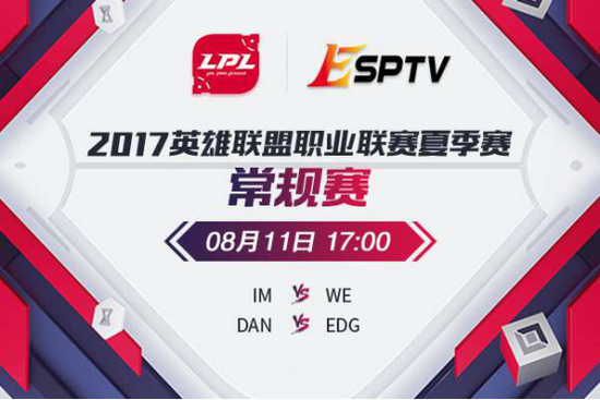 ESPTV电竞世界频道明日(08月11日)17:00将为您直播LPL夏季赛常规赛的比赛,由IM Vs WE,DAN Vs EDG,欢迎届时收看。