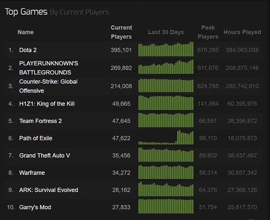 目前绝地求生最高同时在线人数已经排到了Steam历史第三,仅次于V社自己的两款大作DOTA2与CSGO。
