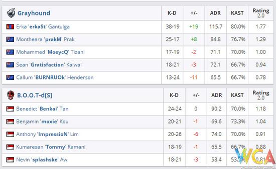本场最佳来到Grayhound vs B.O.O.T-ds 的19回合,此时比分为11:7,Grayhound落后,B.O.O.T-ds 选择进攻2人中路,2人红楼梯直出,erkaSt在A包点发现敌人要爆闪强出之后,erkaSt直接退到链接警口的位置,erkaSt在秒掉第一个匪口出来的敌人之后,压枪追死第二名敌人,接着控枪把枪线拉至红楼梯,用自己惊人的控枪能力完成了3杀,并且把最后一名敌人打残,被队友补枪带走,拿下了本回合的胜利;这个镜头和C9的Stewie2K平常的Spraying有点像,很有观赏性,值得大家一看。