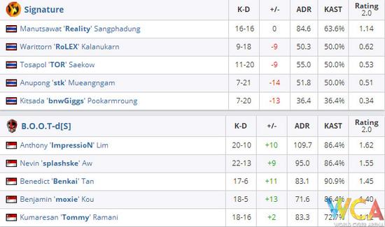 作为进攻的Signature虽然拿下包点,可惜被回防的Boot.ds队员拿下手枪局,随后进攻无果的Signature被Boot.ds连拿7分,Signature选择暂停之后,改变打法拿下了第一分,之后Signature的队员们开始发力把比分追回;上半场比分10:5;下半场进攻方Boot.ds成功拿下了手枪局,之后用着自己火热的手感连续拿分,Signature的防守只拿到一分,被Boot.ds以16:6结束比赛。