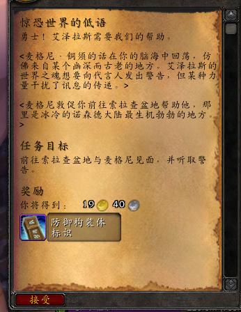 艾泽拉斯的世界之魂通过代言人麦格尼铜须向我们发出警告,希望我们去诺森德的索拉查盆地帮助他。阻止梦魇,帮助艾泽拉斯的世界之魂。