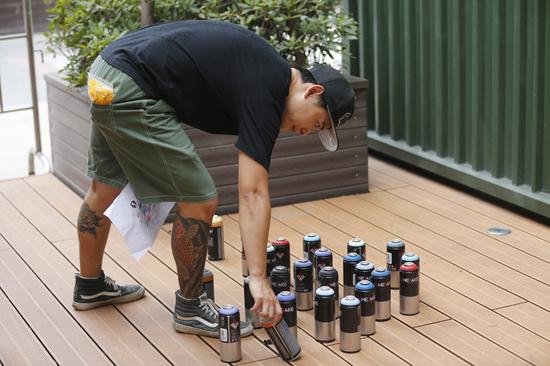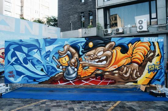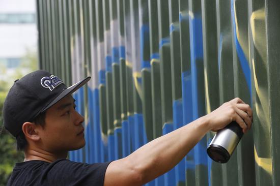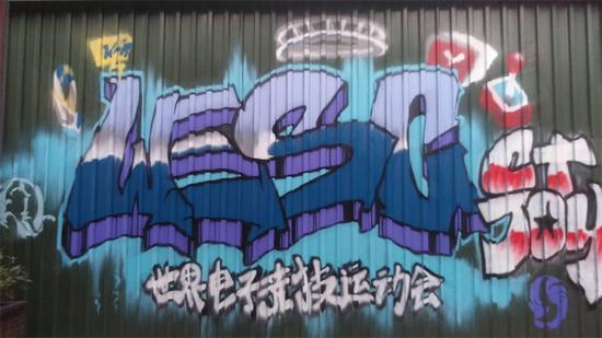 涂鸦艺术家Vane正在精雕细琢他的最新作品——WESG2017电竞主题涂鸦。