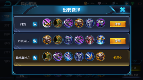 第一套出装主要就是打野,第二套出装因为上单的话,一般都是一个射手+一个辅助,出肉的话线上压力会稍微好一点,不用频繁回家被压制等级。出魔女是防止被对面一套带走,随后再开始考虑输出装备,以及反伤。第三套输出花木兰出装,虽然有强调输出,但是总体来说还是堆物理防御和魔抗更重要,随后再考虑破军这件在后期输出必出的装备。
