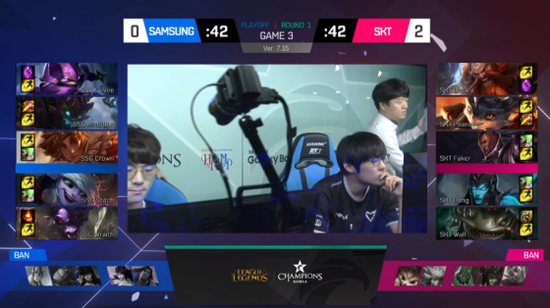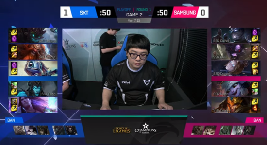 LCK夏季赛季后赛第二场在SKT和三星中进行,最终SKT 3-0击败三星晋级下一轮比赛。由于三星输了比赛所以三星只能去参加之后的3号种子冒泡赛才有机会拿到进入S7的机会。而SKT距离自己确认进入S7又近了一步、下一轮将迎战KT,而KT至今还没有赢过SKT。